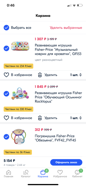 Неплохие скидки на игрушки Fisher Price на озоне, особенно на обучающего осьминога.
