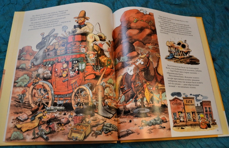 До сих пор не понимаю, нравятся мне её иллюстрации или нет, но за 41р грех было не взять. Формат очень нравится и переплёт.