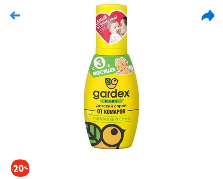 У нас gardex. Помогает неплохо, но опрыскиваемся не только перед выходом, но и во время прогулки. Запах резкий, но почти сразу исчезает, а эффект остаётся. Вот такой: