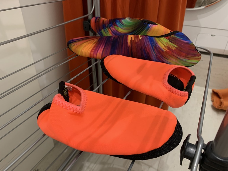 Купила сыну в дополнение к тряпичным таким (потому что даже в них ему было лучше, чем без), когда затестила взрослые свои! Боже! Я всю жизнь плавала на гальке с пирсов, потому что войти по камням не могла, а тут такое!!!