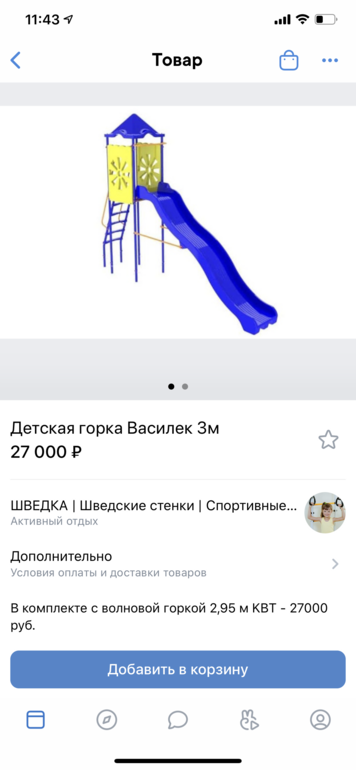 Она низкая очень плотный пластик. Может по фотке погуглить, такие продают. В той что по сайту по мне маленькие бортики. А мои любят забираться вверх по горке. И ещё она удобная что не нужно. На не нужно взбираться и поддерживать младшего. Стоишь сбоку и держишь.
