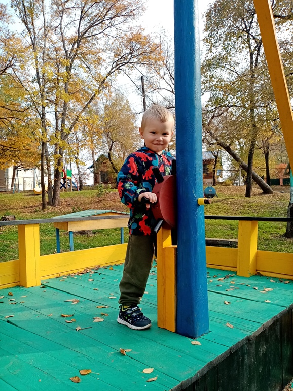 Мальчик 2,7 - качели и штурвал.