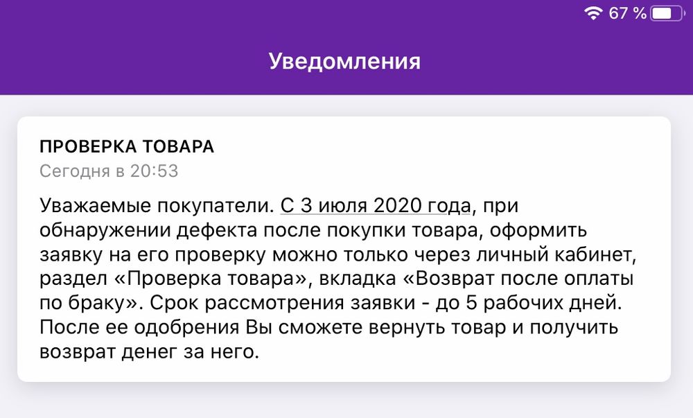 Это про брак. Раньше можно было создать заявку, а можно было просто принести в ПВЗ и ждать решения
