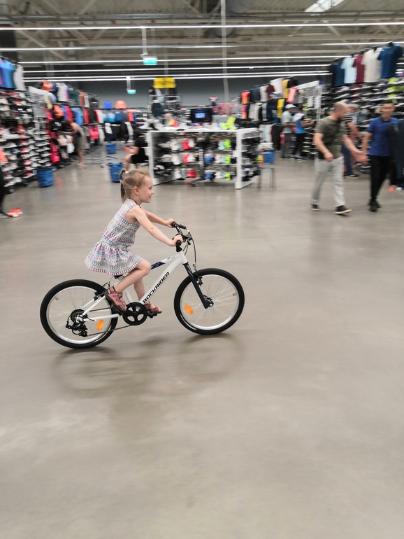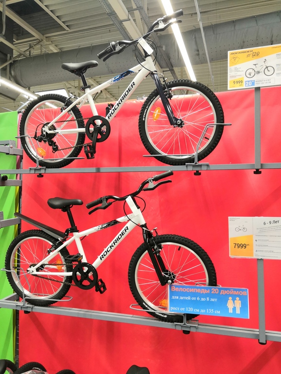 В декатлоне появились новые модели, вес 11 кг , колеса 20, легкий ход, этот со скоростями , есть точно такой же без скоростей , моя просто покаталась , роста пока не хватает))))у неё 107 см, но седло не в самом нижнем положении