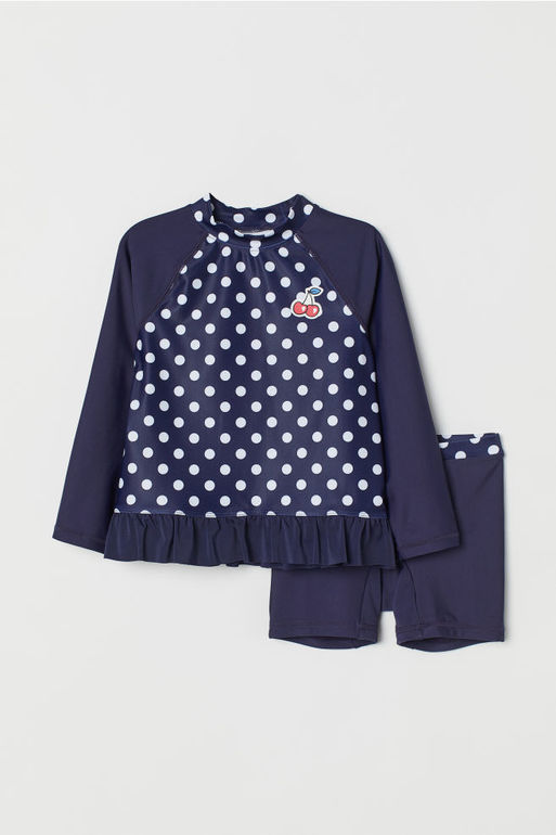 Я взяла, оказалось очень удобная штука. У нас сейчас жара стоит, в 10 утра уже пекло, а в этих костюмах на пляже не надо постоянно кремом мазать детей. Сохнут быстро. Брала в НМ, раздельные, с длинным рукавом. У старшей вот такой