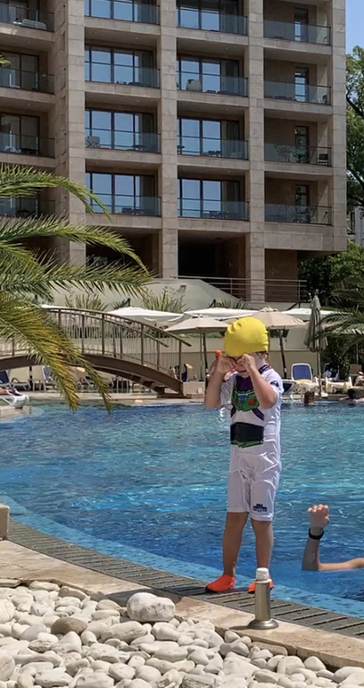 Приходим утром, сначала играют в чем пришли, перед купанием надеваю и снимают перед уходом с пляжа. В номере стираю. Вечером дети купаются в плавках/купальнике