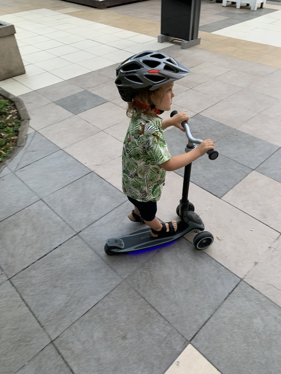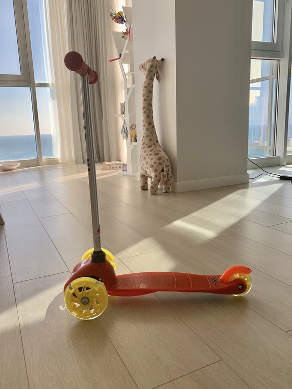 У нас и мини микро в ходу 🤪, мы его оставили по дому кататься. Я купила детмировский светящийся самокат, с него колеса новые поставили на микрик и вот)))) светится вечером офигенно)