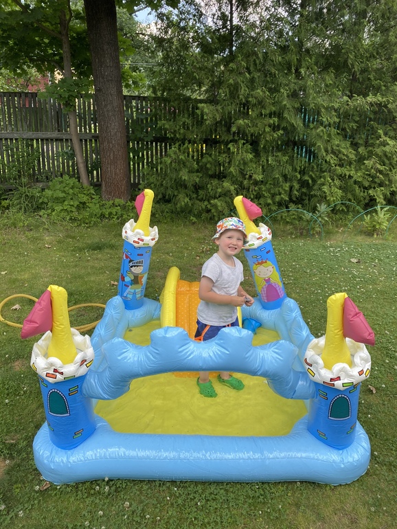 У меня отдельно надуваются борта с башнями, отдельно каждая каемка вокруг башен 4шт, отдельно 5 частей горки🙈