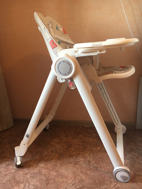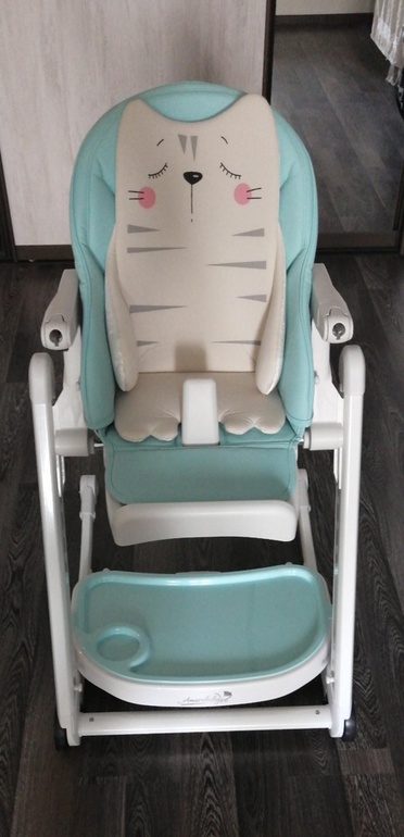У нас стульчик бренда Amarobaby, использую практически с рождения, можно использовать как кресло-качалку. Я с ним сама легко справляюсь, вес небольшой, есть колесики, в сложенном виде занимает мало места. Сидение выполнено из клеенчетого материала, поэтому его можно мыть влажной губкой. Большой съемный поднос, регулируется поножка и высота стульчика. Он нам идеально подошел.