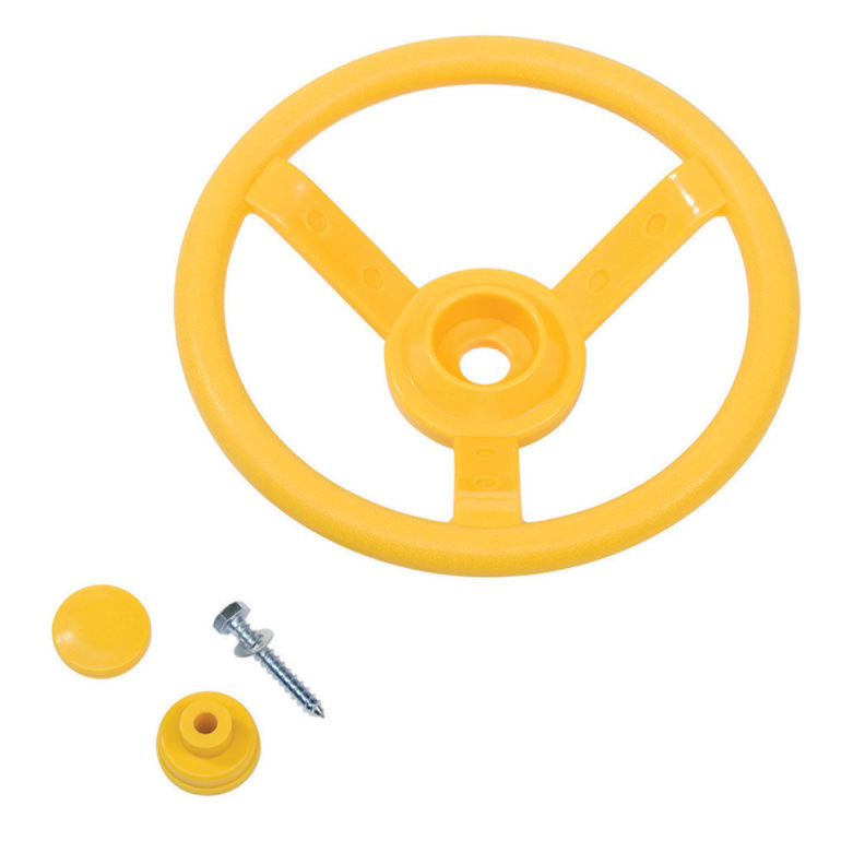 Самое главное, чтобы руль был надежно прикреплён в основанию. У нас на одной площадке он несколько раз отрывался. Многие дети его не только крутят, но и тянут на себя.