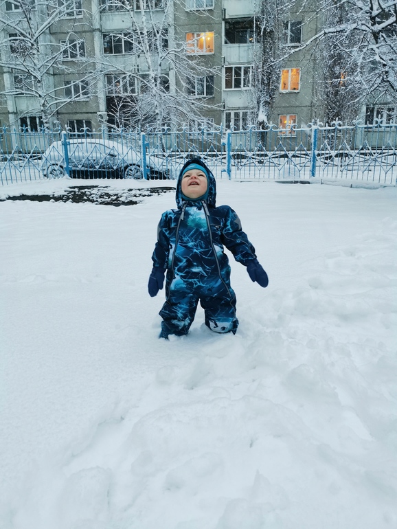 Если плюсовая температура была, то сыну жарко было. Комбез расстегиваешь, а оттуда жаром прёт.