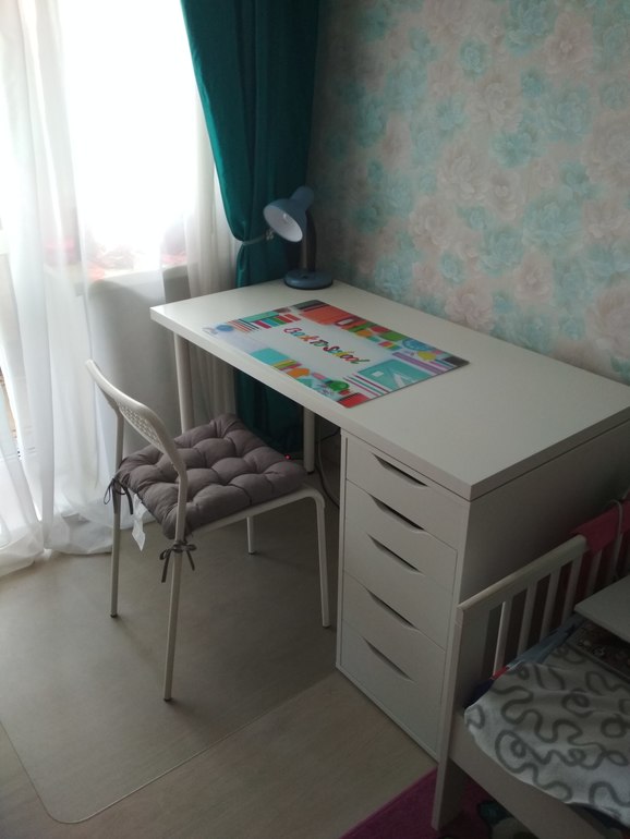 У нас вот так, только стул купили в ИКЕА другой, он повыше и крутящийся . Те столы ИКЕА которые советовали вам выше, они узкие и меньше в длину. Стол то не на один год берете, а в старших классах нужно побольше места.