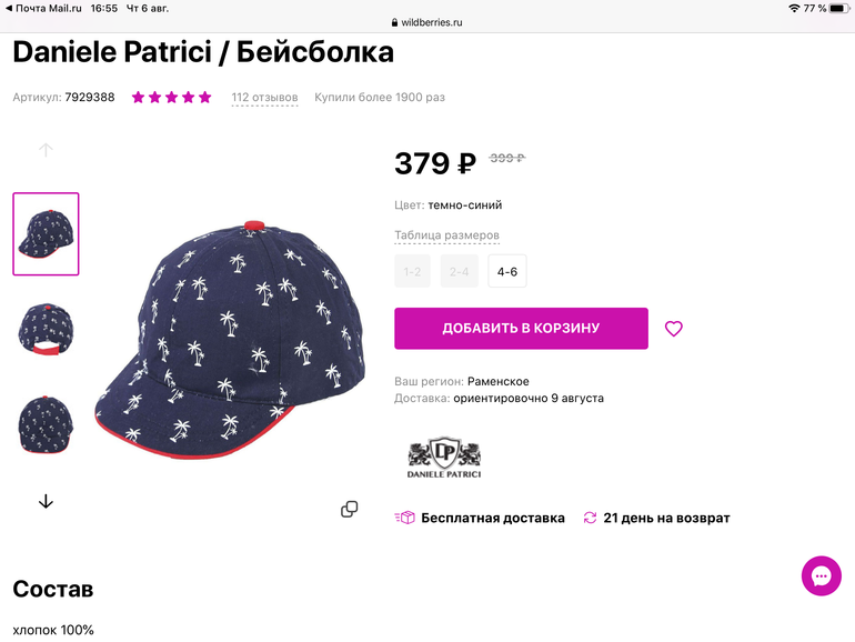 Хоть у него и 100 процентный хлопок одна, но голова потеет в ней в жару