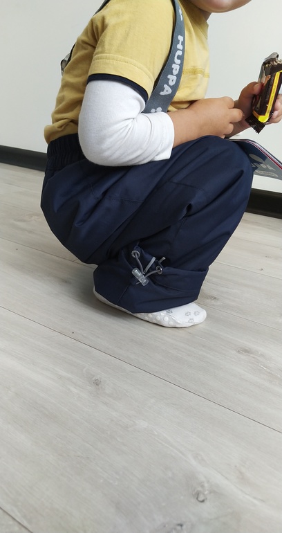 Для меня примерно также, только мы ещё и на беговеле, поэтому без штрипок штанины жёстко задираются даже при наличии гармошки внизу)