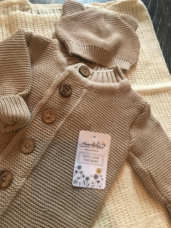 Сегодня только одевали вязанный комбез, что-то на улице похолодало. Покупала в июне на озоне бренда Amarobaby, думала до осени не пригодится. У нас в комплекте еще шапочка. Уютный, тепленький наборчик. Комбез из полухлопковой турецкой пряжи, качество порадовало.