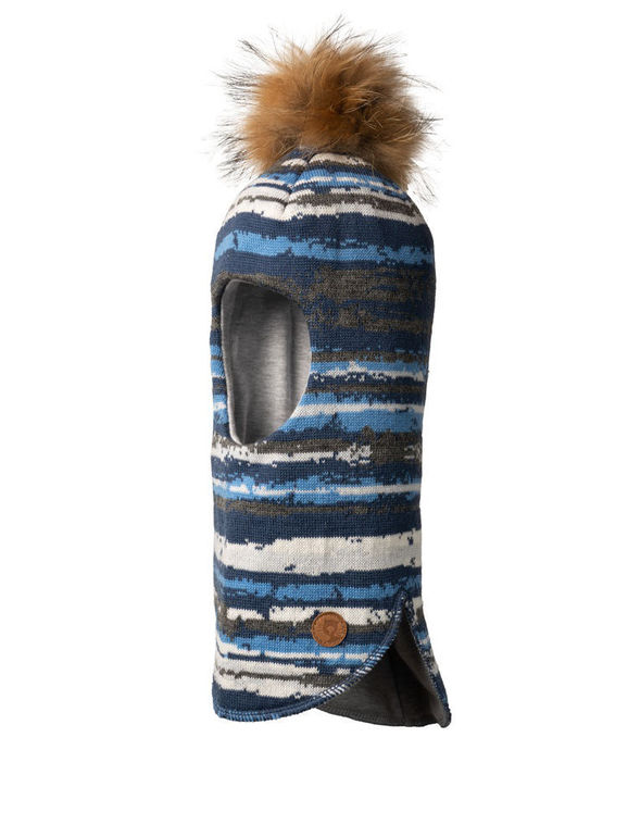 Шапку бы выбрала в тон голубым пятнам, возможно с ярким акцентом.