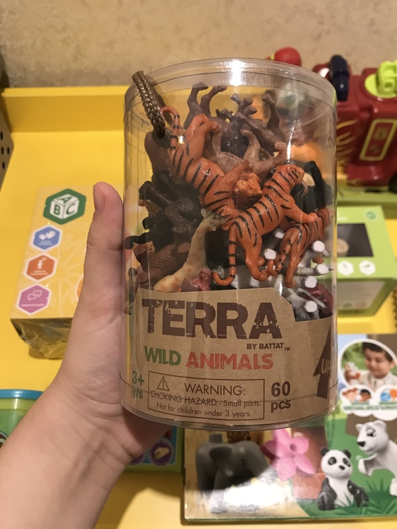 Животные - несколько видов по пять штук каждого. Для счёта и игры можно использовать и не боятся что потеряются. Прям в расход пущу.