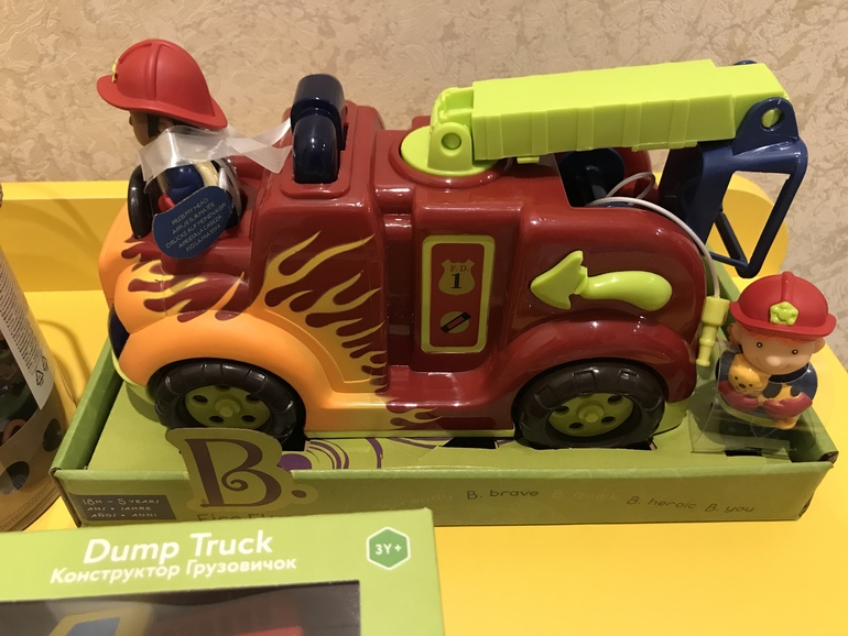 Купила набор разрезных фруктов, деревянную машинку конструктор, большую пожарную машину Баттат (давно ее хотела! На другом магазине она до сих пор 2500), водную раскраску и набор животных в коробке на пробу, так как шляйх конечно хорошо но 500 рублей за штуку а тут весь набор из 60 фигурок за 500 вышел.