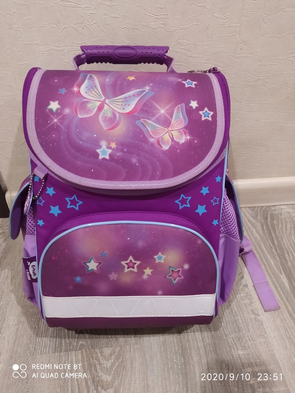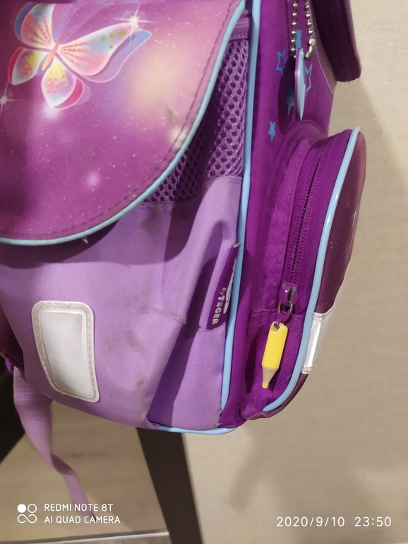 Внешне вроде ничего, но у нас через 2мес, отвалились язычком на основной молнии, на кармане всё ок. Фото сбоку от падения на ранец, материал потерся . Сам ранец целый, но и цена ему не больше 1000, мы так и купили. На этот год взяли другой. А если про модель говорить, то она достаточна удобная и вместительный и легкий ранец.