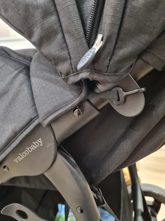 Сейчас посмотрела, на фотках на озоне накидка крепится между текстилем и рамой. Предположу что за полукольцо на котором ремень для переноски прикреплен