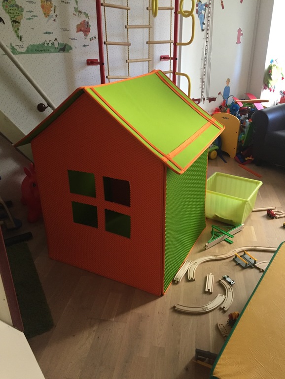 У нас икеевский замок(или цирк ?) и из картона был... но они были интересны первую неделю, потом место занимают...самый лучший домик - устроенный под столом))