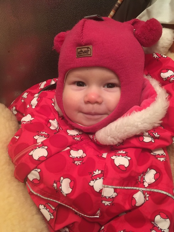 Детская одеждаДоброе утро. Посоветуйте шлем теплый для сидячего малыша. Чтобы не сползал на глаза,мягкий,теплый. Керри,бизи,журавлик,киват?