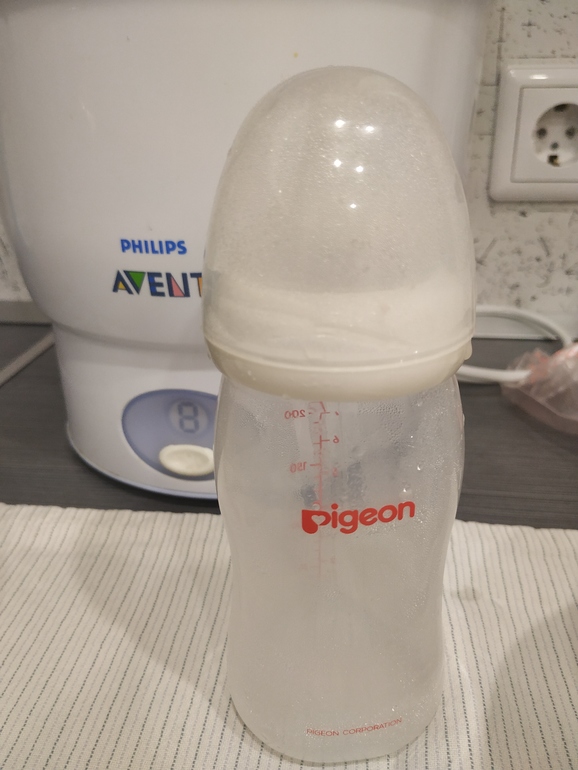 Т.к. мы на смешанном питании, бутылочки используем и пока не нашли ту самую, перебрали кучу: и Авент и Канпол и Чикко и Медела... Но опять Япония рулит. Лучшая бутылка, точнее сказать , соска - Pigeon. С ней малышка не путает метод сосания и не проливает еду.