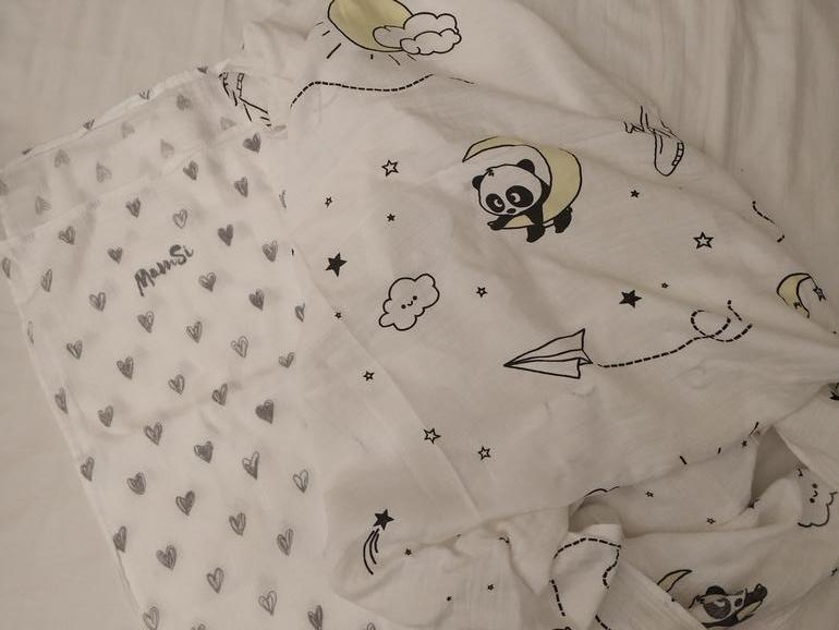Они лёгкие и приятные на ощупь. Размер советую не меньше 120x90 или 120x120. Ну ещё есть 3 ситцевые и 4 фланелевые пеленки.