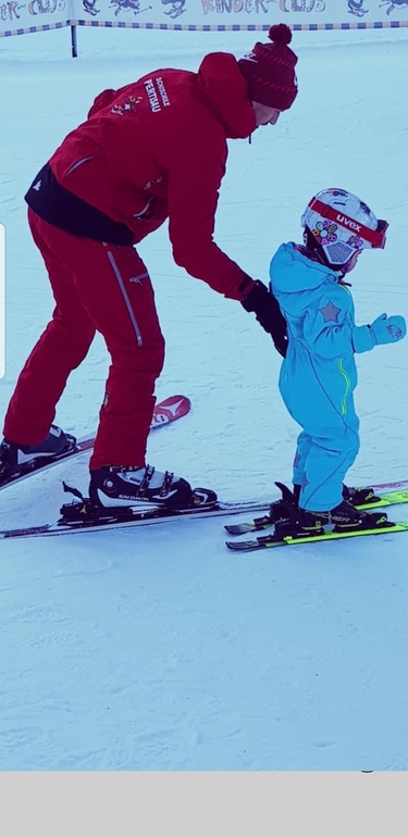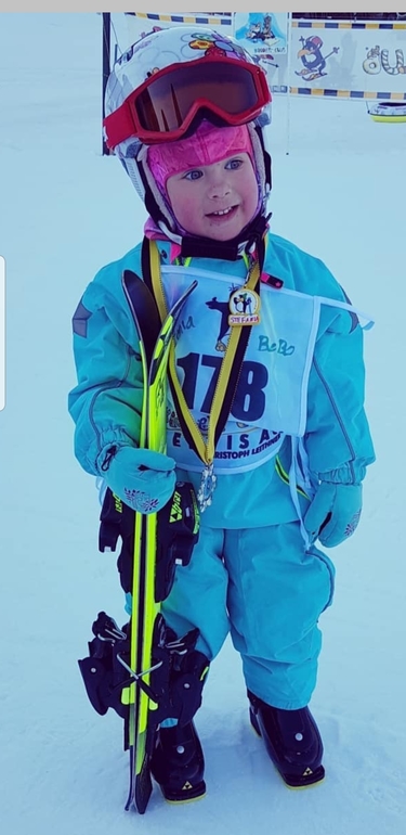 У дочки лыжи ниже ростом чем сама?