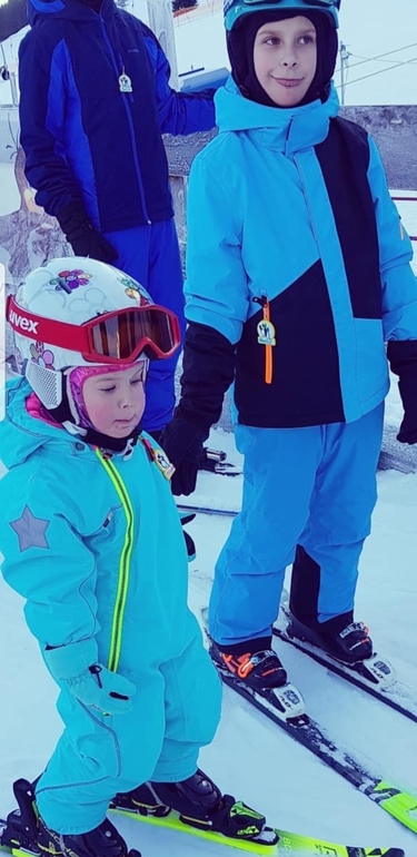 Ставили в Австрии на лыжи обоих. Там изумительные детские горнолыжные школы. Дочь уже летает со склона)))