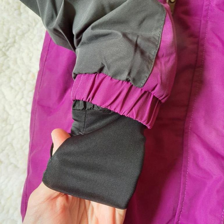 Цвет унисекс, штаны черные, куртка фиолетовая с темно-серыми вставками.