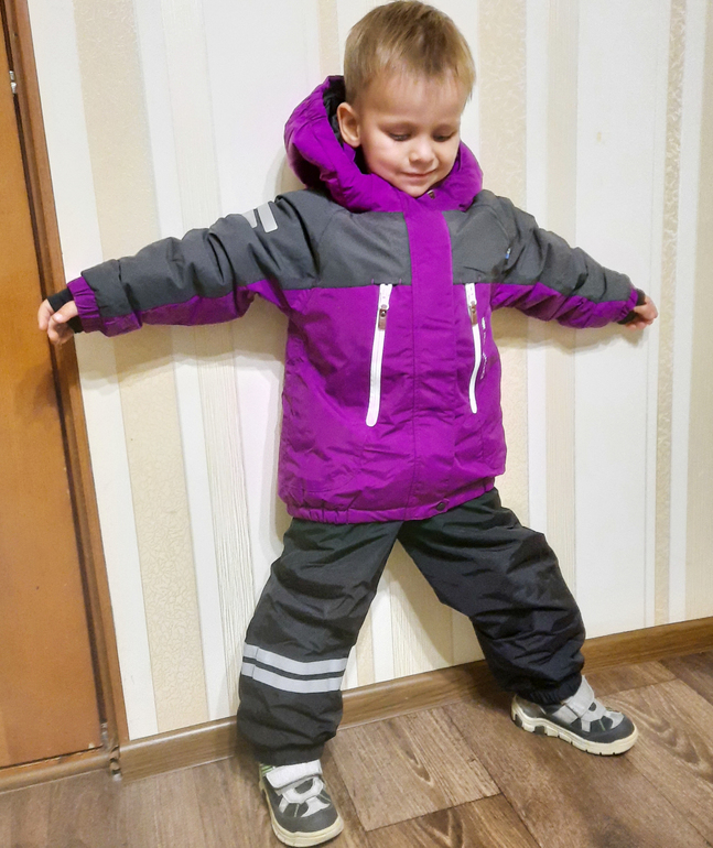Итак, сын ростом 104-105 см, размер взяла 110 см. На мой взгляд, запас приличный. Не могу понять, в размер он, или все-таки есть небольшой плюс, кому как кажется?