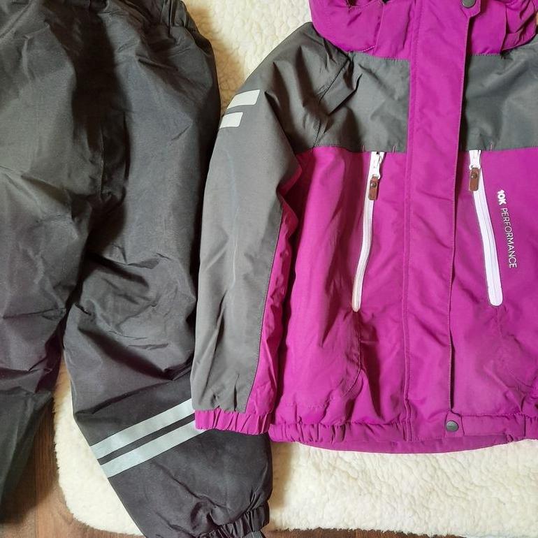 По теплоте, заявлено 160 грамм. По ощущениям, комплект теплый, даже теплее чем ожидала. Пухленький, в штанах на попе, участок, утепленный флисом. Сезон холодная осень, зима.