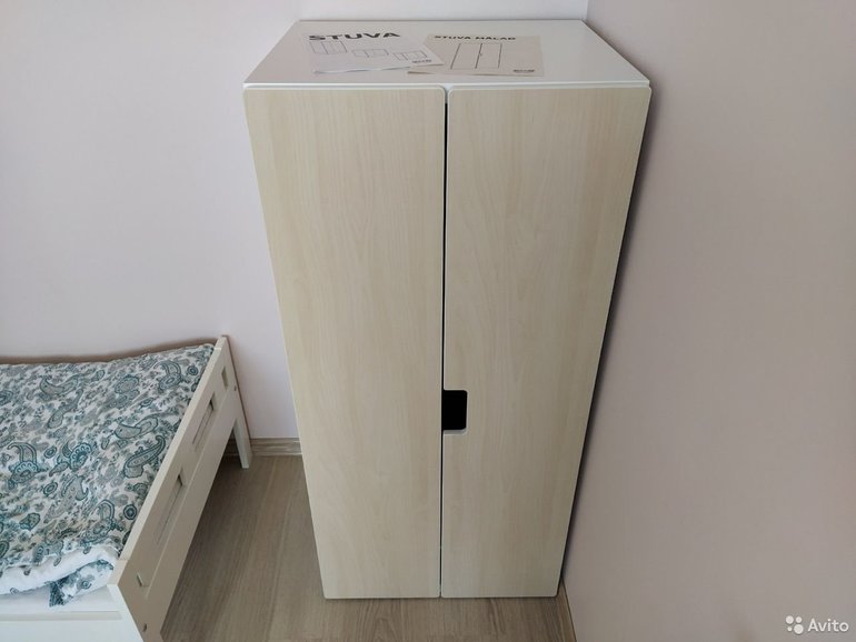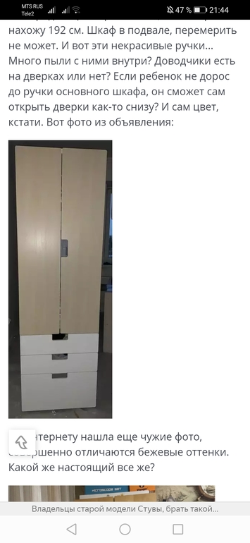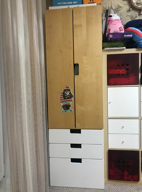 В продаже нашла единственный бу вариант старой Стувы, недорого, "состояние идеальное". Какая у него высота, 192 или 180 см? Продавец говорит 180 см, а в интернете нахожу 192 см. Шкаф в подвале, перемерить не может. И вот эти некрасивые ручки... Много пыли с ними внутри? Доводчики есть на дверках или нет? Если ребенок не дорос до ручки основного шкафа, он сможет сам открыть дверки как-то снизу? И сам цвет, кстати. Вот фото из объявления: