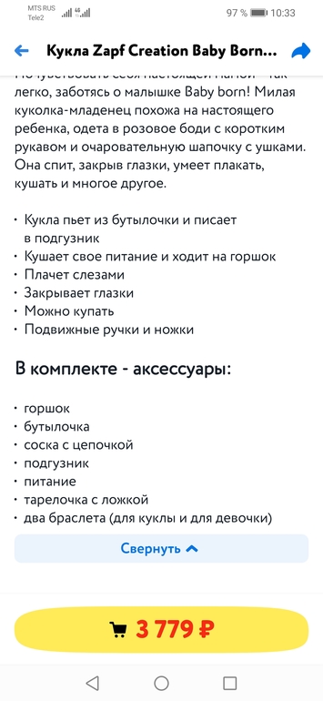 Медленно присматриваю подарок дочке на нг. Думала про бэби борна изначально, но отталкивает множество отзывов, что он тяжелый для двух-трёхлетки.