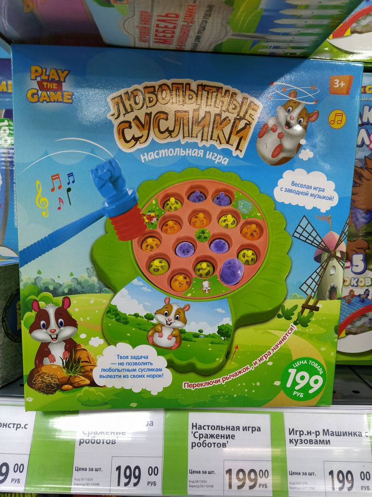 Суслики ездят по кругу, нужно бить молоточком , только мы так и не поняли, как их нормально цеплять, ребенок постучал пару раз и все на этом. Хотя мне много чего у них нравится, но эта игра в фиксе огорчила.