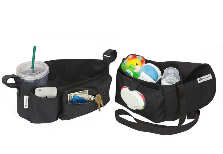 Сумка кросс-боди на себе (телефон + ключи + влажные салфетки) удобнее, так как отходить от коляски все равно нужно!