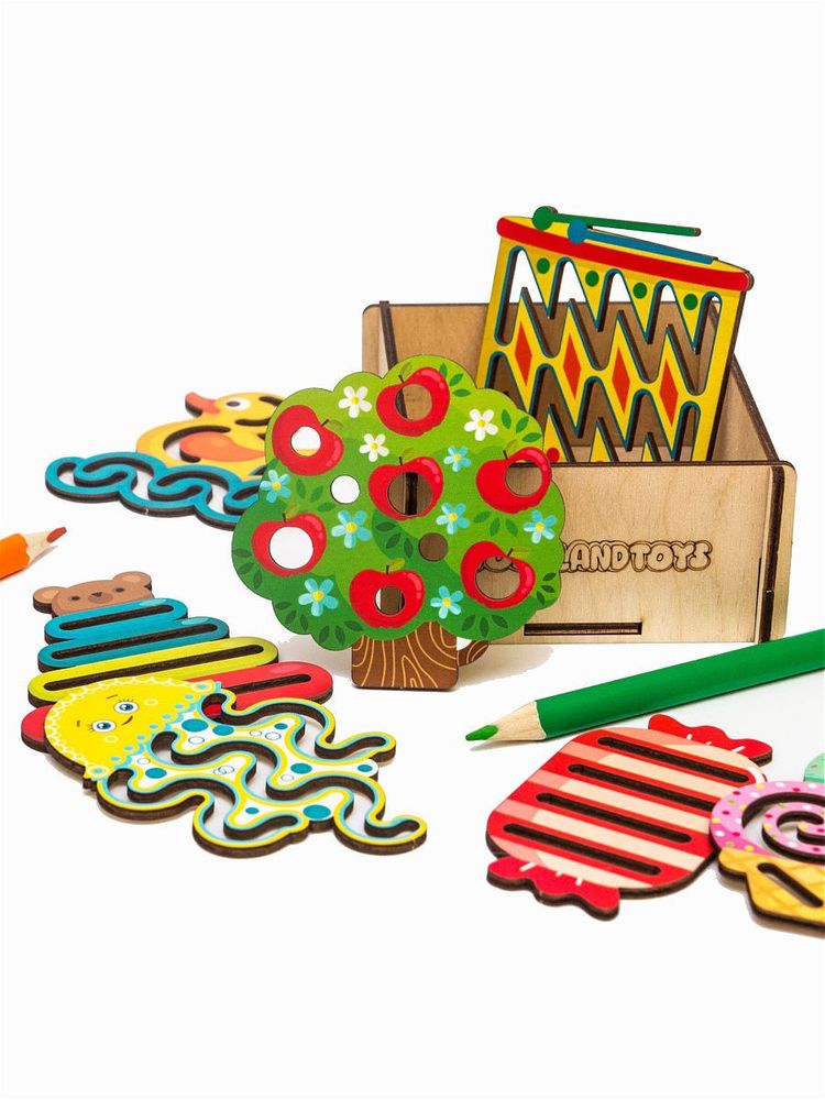 Вот такая игра трафареты.Мой иногда обводит,нравится .Можно деревянные пазлы или какие то головоломоки.У этого бренда они тоже есть .