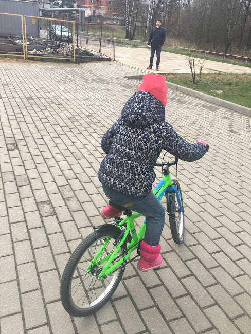 остался стоять наш коняшка у папы в офисе....но тут пришла весна, а вместе с ней-карантин, делать было нечего совершенно и мы пошли гулять и осваивать новый транспорт.