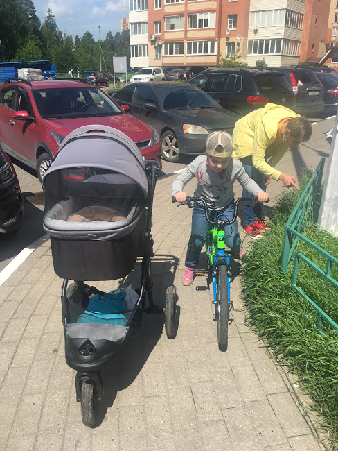 итак, первым его легкость оценил сын, тк именно он таскал его каждый день с третьего этажа и обратно. а потом и дочка поняла, что это ну очень здорово, когда все сама, на все бордюры, по всем кореньям в лесу и ухабам и не надо никого просить))))