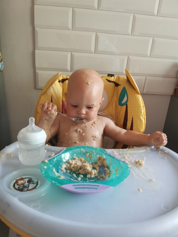 Слюнявчик, если ребёнок ест сам, бесполезен абсолютно. Это как бытовой вентилятор против цунами😃🙈