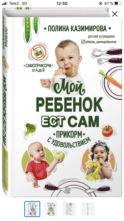 Про книгу - я читала, это про самоприкорм, без пюрешек, в довольно радикальном его варианте. Вам это близко? Или проще дать банку и не заморачиваться? Если близко, можете почитать. Если нет, то нет. Смотря как вы планируете прикорм.