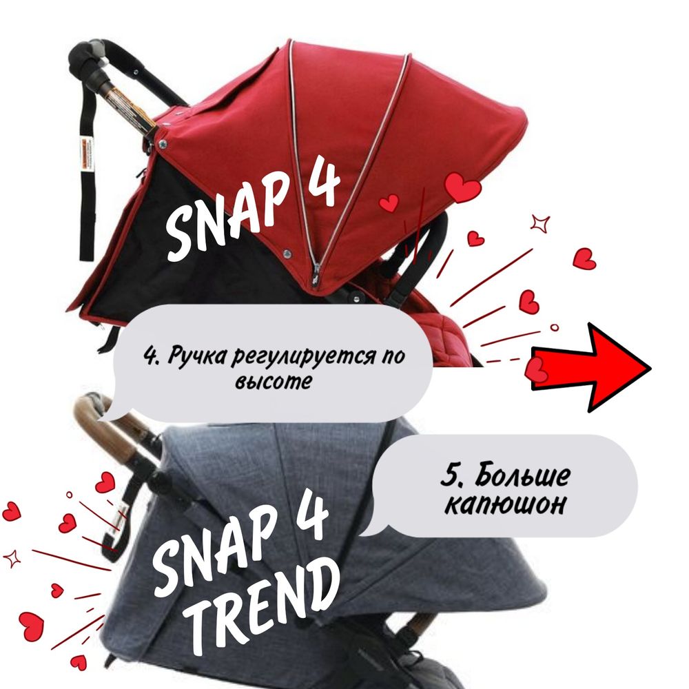 Коляски (только вопросы и выбор)Итак, в начале этого года мне срочно нужно было купить нетяжелую надёжную коляску, которую можно взять с собой в путешествие. И я выбрала Snap 4. Конечно, я заглядывалась и на Trend, но, прочитав в интернете, что коляски отличаются тканью и регулирующейся ручкой, решила не переплачивать. И зря. Кроме выше обозначенных отличий, у Trend есть: