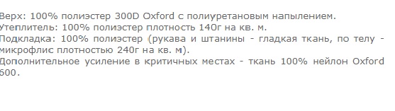 Сам утеплитель - 140гр. Подклад - флис, плотность его 240гр, условно это ещё около 40гр к утеплителю.