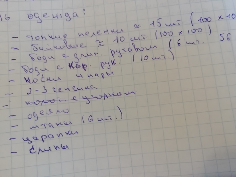 ой для всех так по-разному🤷 мне в 56 размере было удобно только слипы, где ножка закрыта и ручки закрыть можно, штуки 3-4. Для красоты у нас еще был бодик с длинным рукавом, штанишки на широком поясе и кофточка с капюшоном. Плюс по паре обычных и шерстяных носков (берлинское лето очень разнообразное, ага), и шапочка. Вам нужен еще теплый комбез соответственно, если дома холодно, то флисовый человечек тоже пригодится. 62 размер уже больше одежды: 5-7 слипов, 6-7 боди на запах с длинным рукавом, 2 штанишек, кофточка, флисовый слип, парочку носков и шапочка, ну и комбез.