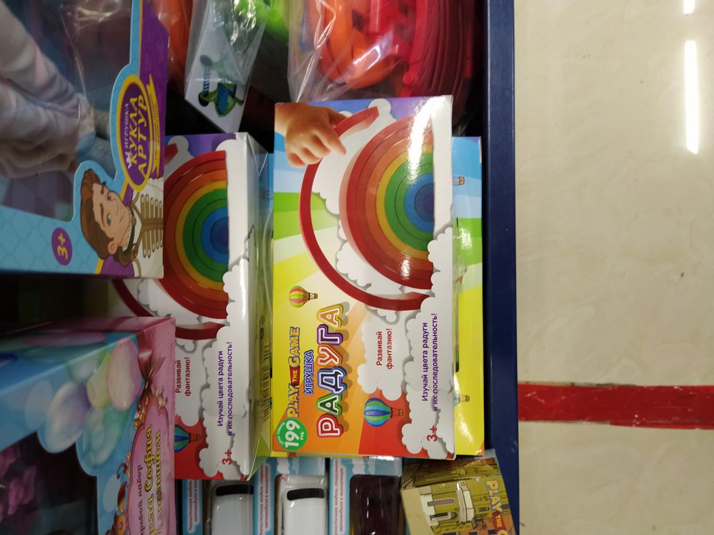 Радугу не рекомендую! Я в Фикс забегаю минут на 10-15, так как муж с детьми на улице ждут. Поэтому хватаю все очень быстро. Вот так и радугу схватила, обрадовалась, почему-то была 100% уверенна, что она из дерева. А дома открыла и в нос ударила вонючая краска еще и пластик с разводами и неравномерной прокраской. На след день отнесла обратно.