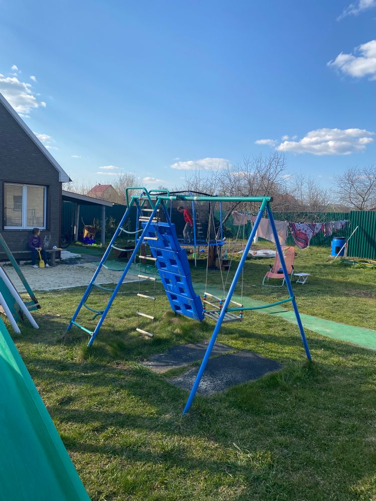 У нас вот такая , только с гнездом. Есть такие еще с горкой. Бюджетный вариант.Дети активно пользуются 2 года , кстати , на гнезде качаются вдвоём. Взрослые тоже висят😁
