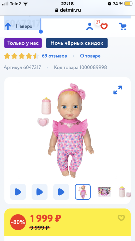 С большой скидкой в детском мире , -80 процентов. Сейчас получается 2000. Я дешевле не видела. Она конечно очень на любителя, но возможно кто то ищет такую на подарок к нг