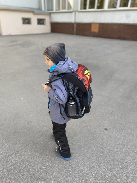Под брюки кальсоны. Говорит не жарко в школе. Сверху комбинезон зимний. Ботинки зимние как обычно и до школы. На липучках + Куома. Рюкзак у нас Гризли. Есть одноклассники, которые и -10 ходят кальсоны + школьные брюки + Куртка. И не мерзнут) Кто-то на машине, кто-то рядом живет, а кто-то просто очень жаркий)