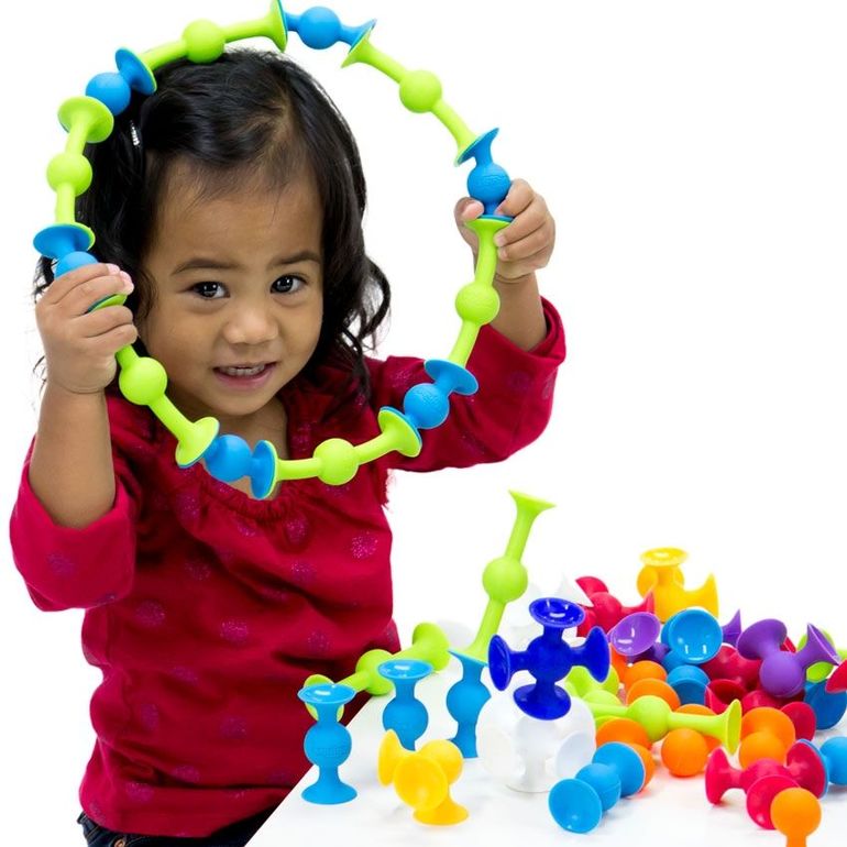 Музыкальные тоже есть, пластилина почему то боюсь, хотя для моторики наверное как раз? А как выглядит конструктор присоски?